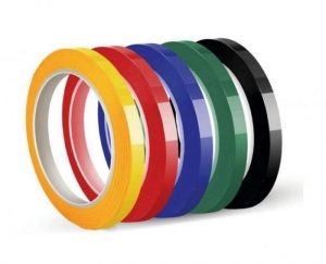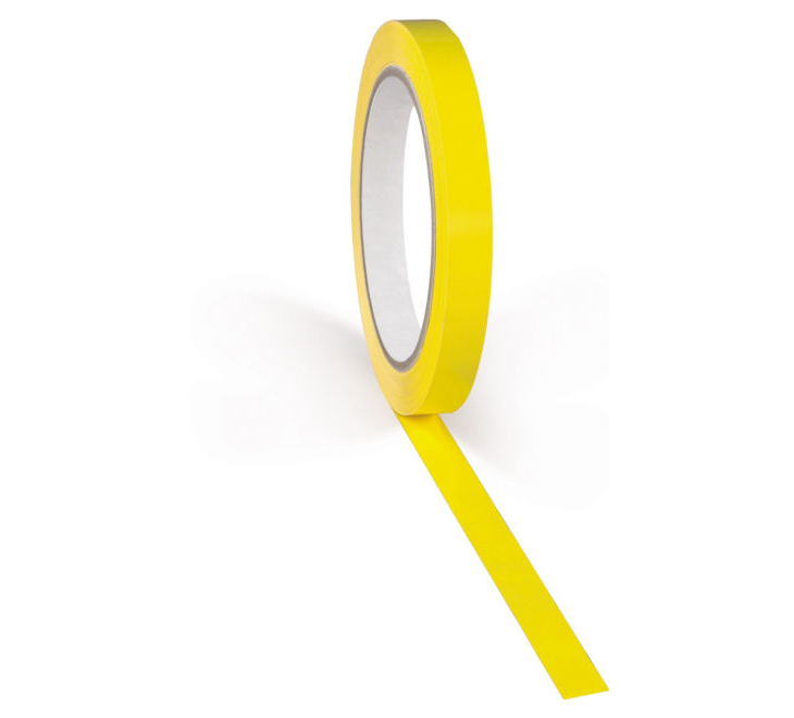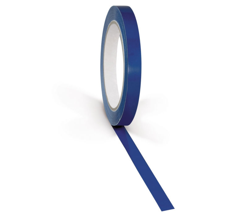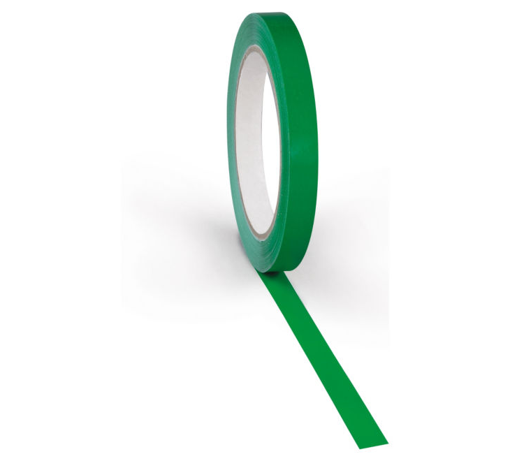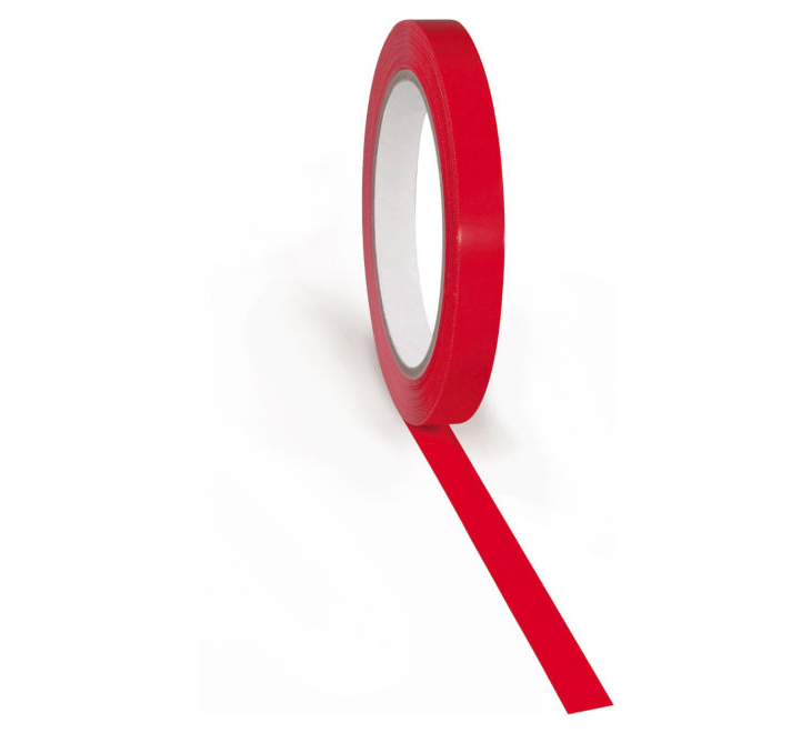 Nastro adesivo per la sigillatura e la codifica di sacchetti, in PVC con adesivo a base gomma naturale.